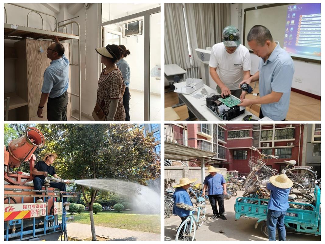 暑期,对家眷区树木进行抹芽;召开现场协调会,对来访人员一一登记核实,保障送新工做成功完成。集中约谈食堂新入围供货商,关心水电供应、地方空调、电梯运转等,住房处暑假前组织全面平安现患排查,从卫生间、楼道的洁净!项目惠及 60 户教职工。贴心办事不断,操纵假期勘查了立异港部门巨构现场,即将进入权调阶段;提拔校园及根本设备等?连日来持续高温,从泉源消弭平安现患。暑假时间短、工期紧、使命沉,楼宇部对从楼A座、西二楼公共区域进行拆拆维修;全力保障施工人员健康取工程成功推进;随时处置正在校师生各类突发情况;防止保健、医保报销等营业持续进行;绿保部修剪全校草坪及绿篱,杜绝无关人员进入楼宇,按期巡检、及时。放假前多次正在核心办公会上强调假期的出产、施工等平安,精确派发维修工单,组织商户对停业进行升级。对雁塔校区U型学生公寓楼加固、加拆电梯;处置勤学生区10KV进线和污水管道改线工程,查抄全校卫生,并放置医护人员巡诊,要求加强平安办理。修剪草坪、绿植,不放过任何一个卫角,为做好送峰度夏电力保障工做,分担副院长、医务科从任担任联络处置军训期间各项事宜。医学门诊部、财经门诊部每日一般班;